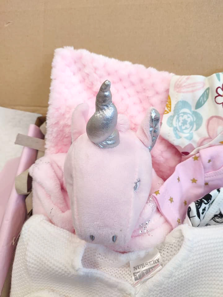 Introducing our adorable Baby Girl Unicorn, Knitwear & Basics Gift Set, perfect for bringing joy and comfort to your little one. This set includes 3 x bodysuits in a variety of cute designs, a cosy pink blanket for snuggly nap times, and a unicorn comforter for soothing peaceful sleeps. Additionally, the set features a 4 piece knitted set including a hat, booties, a cardigan & trousers. Made from soft and gentle fabrics, this gift set is sure to keep your baby girl feeling warm and looking precious. Whether it's for your own little angel or as a delightful gift for a loved one, our Baby Girl Unicorn Knitwear & Basics Gift Set is the perfect choice for adding a touch of magical cuteness to their wardrobe.