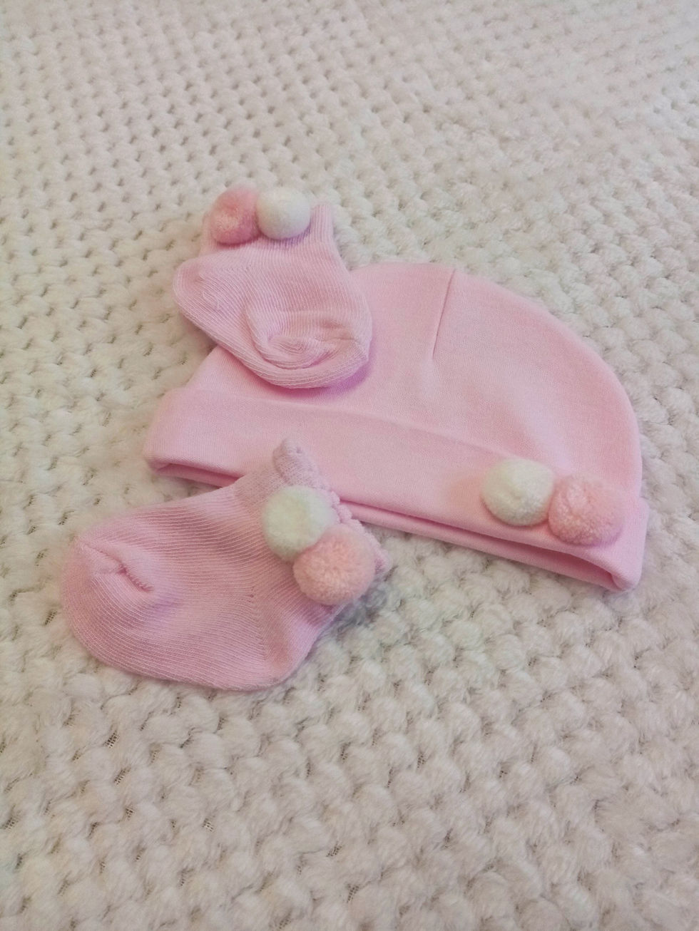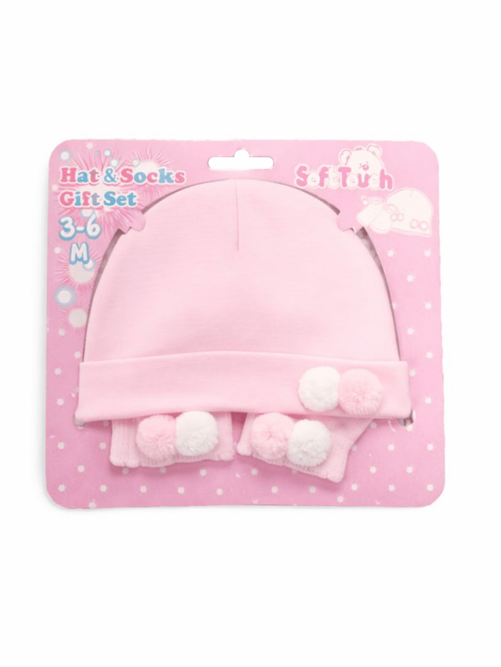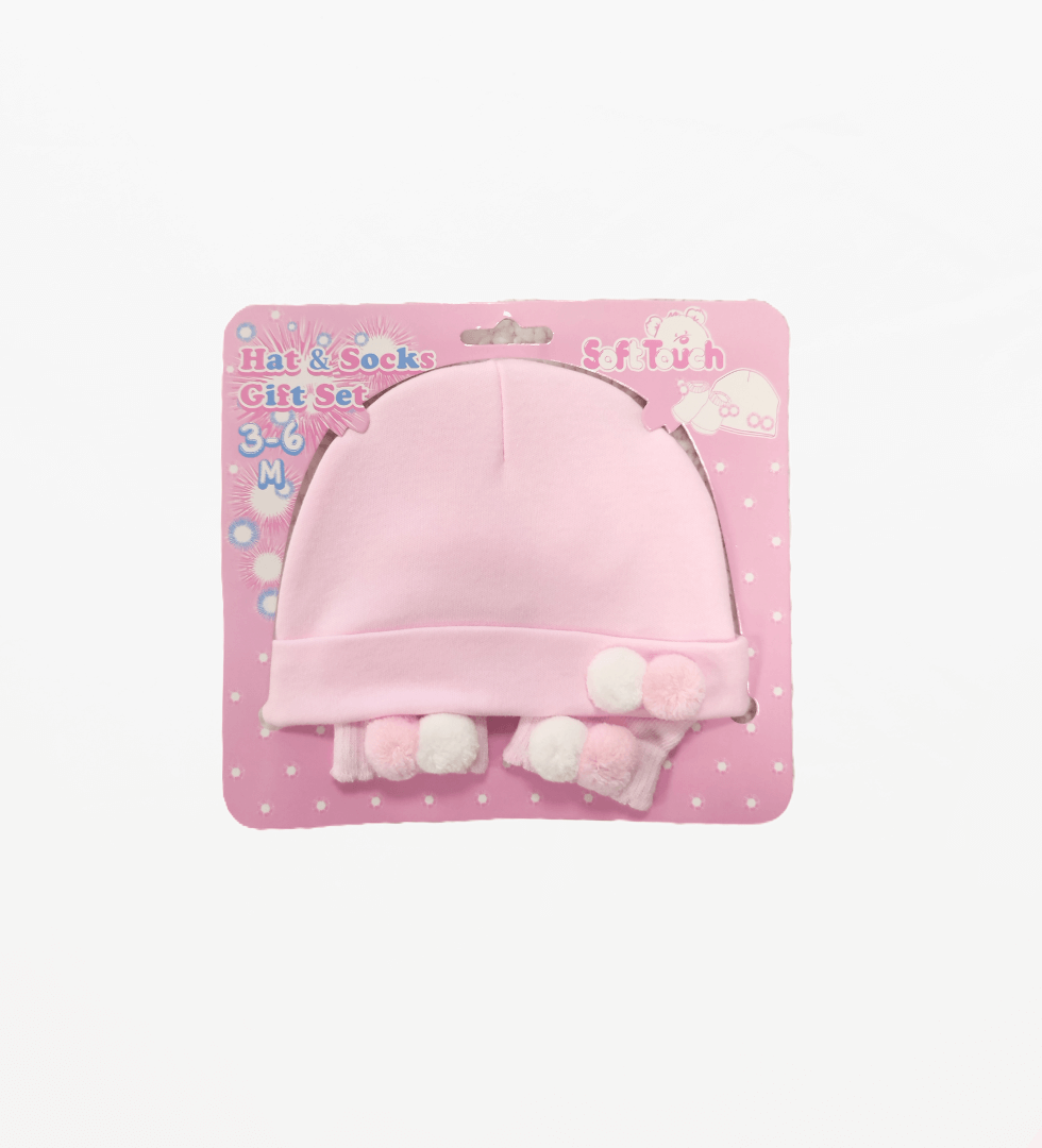 Pom Pom Hat & Socks Set - Pink/White